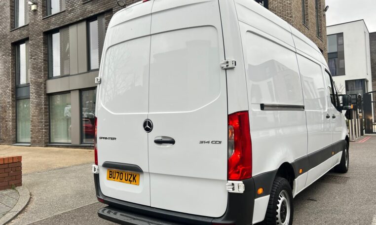 MERCEDES BENZ SPRINTER 314 CDI, MWB, HIGH ROOF L1 2020 (70 PLATE) INCLUSIVE OF VAT, FINISHED IN WHITE, ONE OWNER FROM NEW, KEYLESS START/STOP, DUAL PASSENGER SEAT, FULL MERCEDES SERVICE, JUST BEEN SERVICED,THIS VAN HAS COVERED ONLY 142,000 MILE, MOT OCTOBER 2026 UPGRADES INCLUDE